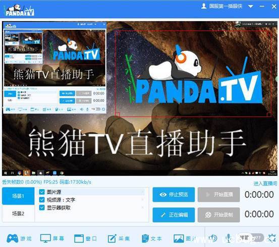 助手中有两个场景选择,主播可以自行添加不同场景中相关视频、摄像头、文字、图片,并在“正在编辑”中编辑相关内容的大小和位置。