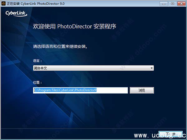 3、选择简体中文,软件默认目录为【C:\Program Files\CyberLink\PhotoDirector9】不要修改安装路径,否则无法精简;