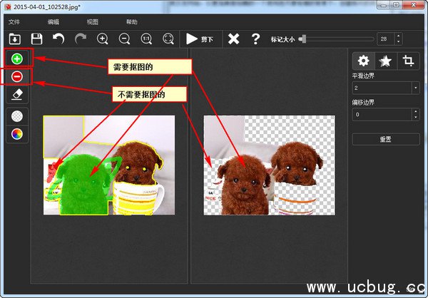 你需要抠图的部分用绿色表示,不需要的用红色的表示。涂抹完成后,软件就会自动识别你想要截图的地方