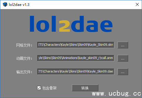 打开skn文件,勾上包含骨架才能选择动画文件.anm,然后输出.dae文件