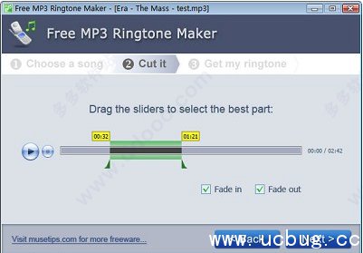 您可以预听铃声使用播放器按钮。您还可以添加一些淡入和淡出效果定制你的铃声。
