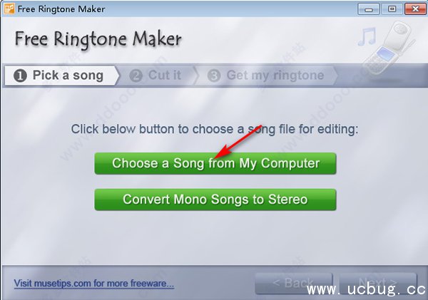 为了创建自己的免费铃声,只需按一下按钮,从我的电脑选择一首歌曲。