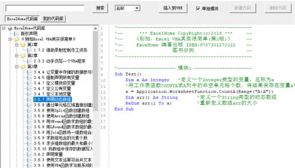 - ExcelHome代码库:包括ExcelHome论坛出品的经典图书《别怕,VBA其实很简单》中的大量实用代码,以期帮助大家在工作学习中快速的实现相关功能。