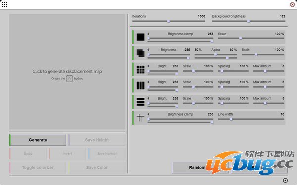 右下角两个是随机生成和一些预设。左下角Generate则是生成,和点击预览窗口一个效果,Save Heigjt就是保存为灰度图了,保存的图为8K级别的,我没找到可以调节的地方。再下面有个Save Normal保存法线贴图也是很有用的,最下面两个颜色化和保存颜色我觉得用的时候很少,因为只需要灰度图用于C4D置换就好了。
