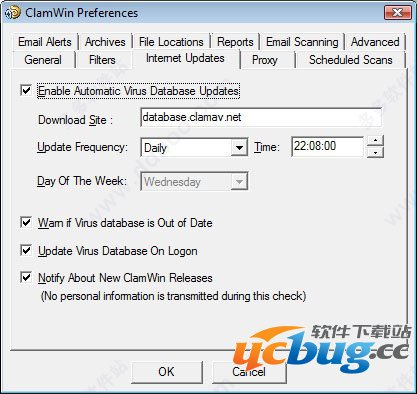 在此选项卡上,您可以控制ClamWin如何获取病毒数据库的更新。