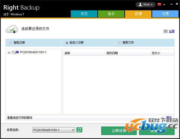 Right Backup具有“智能恢复”选项,可让您快速恢复选择性文件夹。它还包括一个“自定义还原”选项,可以让您手动恢复所需的文件。您可以随时恢复您选择的文件版本。