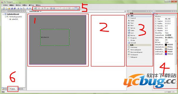 6为已添加控件层次查看窗口,当然它有三个TAB,只有控件层次才最有用。