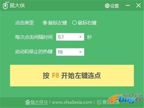 3、鼠大侠鼠标连点器可选择热键为F1-F12中任意一个,自定义热键设置,更加方便操作,无需煞费苦心去设定那些热键。界面简洁,使用简单易上手,是新手玩网游必备的软件;