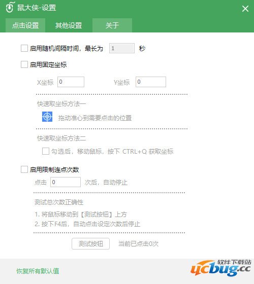 2、多样性的鼠标点击事件:点击时间间隔可自由设置,0.01S-10S的选择范围,最快每秒可点击100次。