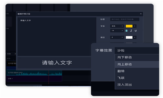 4.选中左侧字幕菜单可以为视频添加字幕。需要添加视频、音效、滤镜、转场、贴图等内容,请切换到左侧菜单的对应功能