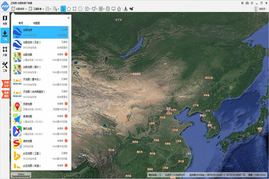 1、26种地图源,谷歌地球、谷歌地图、天地图、百度、高德、腾讯、ArcGIS online、OpenStreetMap、Bing、MapQuest、超图...。
