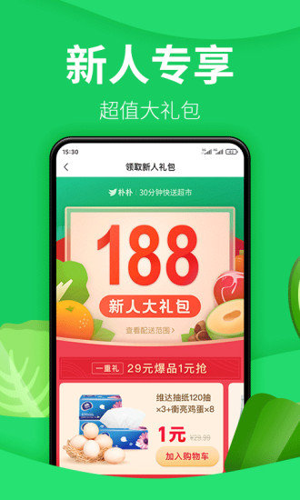 2、天天有特惠,日日能抢鲜,朴朴超市始终以安全、优质、方便、快捷为理念,以诚信作为公司和每位员工的行为准则;