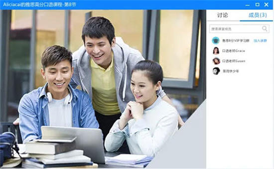 b)通过群应用tab页机构正在上的课程点击“立即上课”进入。