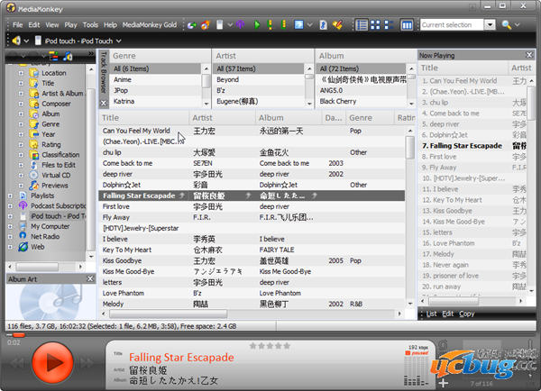 集播放、TAG编辑于一体的音乐管理软件。软件支持较多的音乐格式,包括MP3、WMA、OGG、WAV和音频CD。同时软件支持从CD转录为MP3、WMA和OGG等格式,以及MP3、WMA、OGG、WAV等格式的互转,也可以满足广大朋友刻录音乐CD的需要。