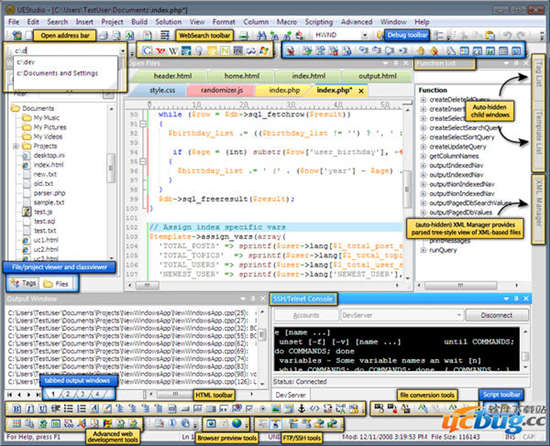 前面分享过UltraEdit,而今天所分享的UEStudio是UltraEdit的开发环境,包含有UltraEdit的所有功能以及对超过30种流行编译器(包括 Microsoft Visual C++、Java、GNU C/C++、PHP、Perl 和其他 30 多种编译器)的本机支持、集成调试器、集成 VCS 版本控制、内置类浏览、语言智能(类似于 Intellisense)、项目转换器和批生产器等高级功能, UltraEdit基于IDE的理念构建,完全为工作在Windows 系统中的软件开发人员而设计。
