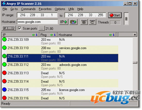 Angry IP Scanner可以扫描的项目也不少,包括了远端主机的名称、目前开启的端口以及IP的运作状况等,让您可以完全掌握对方主机的运作状况,对于网管人员来说实在是个不可多得的好帮手。Angry IP Scanner可以允许您扫描的范围相当大,只要您不嫌花费的时间比较长,还可以从1.1.1.1一直扫到255.255.255.255,AngryIP Scanner会为您详实的去Ping每个IP,并且将状况回报给您。