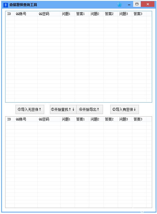 奇易密保查询工具是一个非常有效的QQ密保查询软件,如果你的号被冻结了,但是你忘了密保问题去解冻,那就尝试用这个软件来查询。