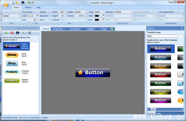 Button Shop是一款功能强大的网页按钮制作工具,软件拥有最全面的按钮小图标,内置了200多种专业设计的网页按钮素材,您还可以自行定义发挥,调整和修改如颜色,按钮形状,添加效果如阴影,镜像等。