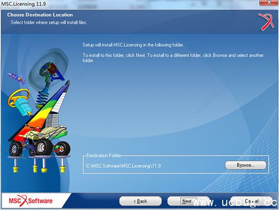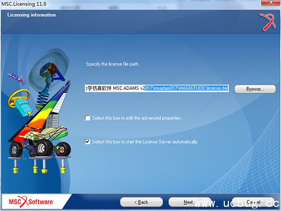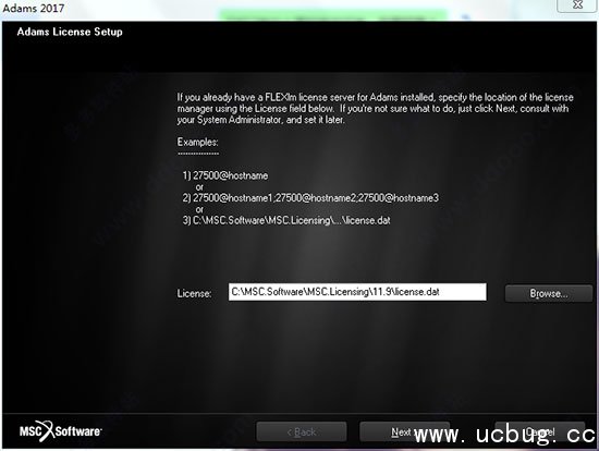 11、安装完成后,弹出界面以下,点击Borwse...,选择C:\MSC.Software\MSC.Licensing\11.9\目录下的“license.dat"文件(这是许可安装中新生成的)
