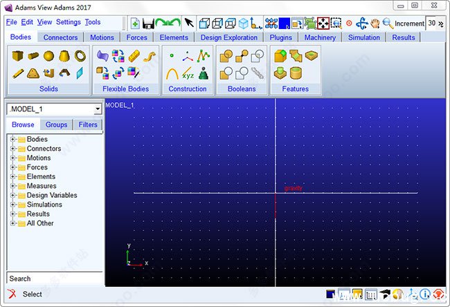 同时,Adams 2017还实现了一款新的前处理模型浏览器,即提供一种改进方法,用于在Adams/View内实现模型导航。这对于理解从同事或者商业合作伙伴那里新获取的模型结构关系特别有用。工程师将体验到改进的模型导航,特别是对于复杂模型,右键点击即可方便浏览非图形实体,动态搜索和可保存过滤器,以及改进的可视化和模型控制。