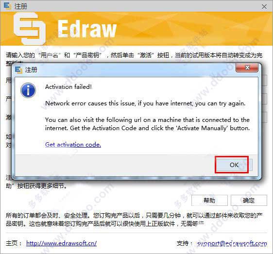 8、点击激活因为没联网,所以这时候会出现个错误对话框,关掉这对话框;
