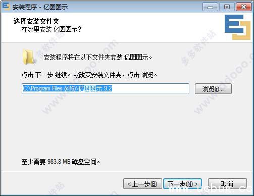 3、默认安装目录【C:\Program Files (x86)\亿图图示 9.2】可以自行更改;