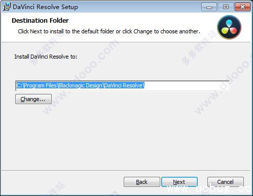 5、软件安装目录默认为【C:\Program Files\Blackmagic Design\DaVinci Resolve\】可以自行更改;