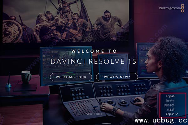 8、至此,达芬奇15精简版成功激活,打开软件,点击右下角,设置简体中文;