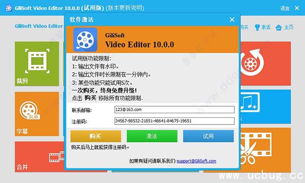 gilisoft video editor 10.0是gilisoft video editor系列软件的新版本,也是目前非常优秀的一款非常强大的视频编辑软件,能够支持AVI,MPEG,H.264,SWF,MOV,WMV等各种格式的视频文件编辑,同时软件使用起来也非常简单,总共三道工序,加入视频,分割和剪裁,并且还可以在后台运行,让软件不占用太多空间。 可以改变帧速率或文件大小,让你轻松实现分裂和切割视频编辑。ps:这里小编带来的是gilisoft video editor 10.0中文精简版下载,由附带的注册码可以完美成功激活软件,其详细的安装教程可参考下文,欢迎免费下载。