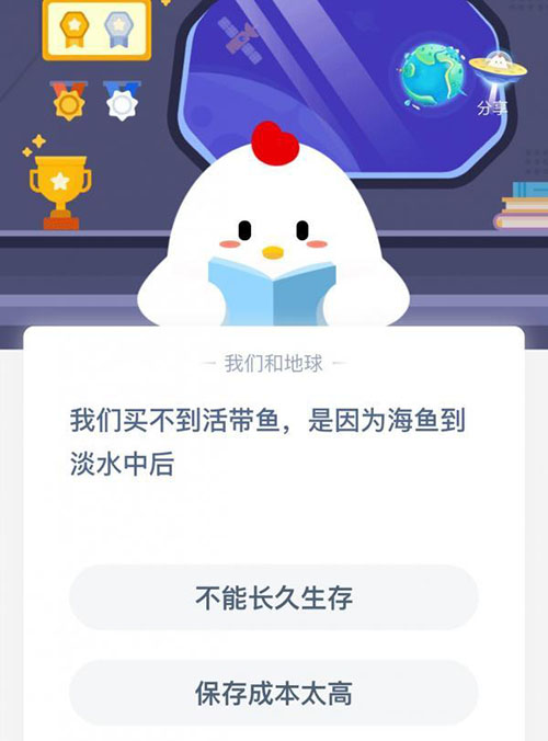 相信在现实生活中有非常多的小伙伴都喜欢吃鱼,但是小伙伴们知道在现实生活中买不到活的带鱼?在今天的支付宝小鸡答题中就问到这样的问题,问题:我们买不到活带鱼,是因为海鱼到淡水中后怎么样?下面一起来看正确答案吧。