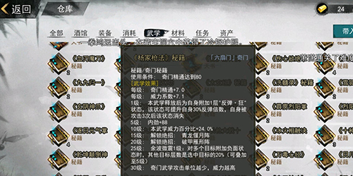 我的侠客中有些武学可以通过门派的任务或是一些人物来学习到,而有些武学又需要其它的方式来获得,而不少玩家想知道我的侠客六扇门杨家枪法怎么获得,所以下面就带来了我的侠客六扇门杨家枪法的获得方法了,一起来看看吧。