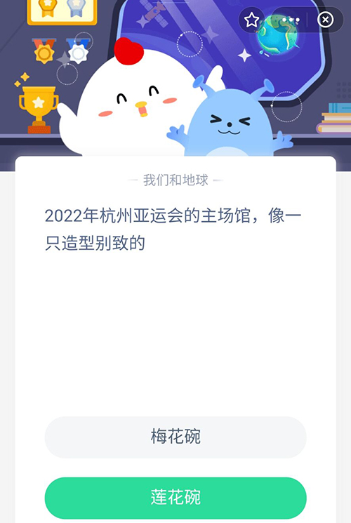 关于2022年杭州亚运会的主场馆,小伙伴们知道这个场馆的造型像什么吗?是像一只造型别致的莲花碗,还是造型别致的梅花碗?今天的支付宝蚂蚁庄园的小鸡答题,想获取正确答案的小伙伴们,赶紧来领取自己的小鸡饲料吧。