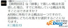 《三国志13》中学习了新战法,老战法会保留吗?下面小编带来官方的《三国志13》学习新战法替换及保留解答,一起来看吧。 问:拜师学会了新战法,我原有的战法会剩下吗? 答:因为只能拥有一个战法,所以在习得新战法时需要选择替换或者保留。