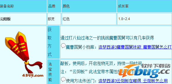 造梦西游3云阳板怎么得?造梦西游3云阳板有什么用?造梦西游3云阳板装备名称 品质 颜色 成长率云阳板邪灵 红色 1.8~2.4获取方式 通过打八仙过海之一的挑战魔曹国舅可以有几率获得魔曹国舅小档案:造梦西游3魔曹国舅技能魔曹国舅怎么打&nb