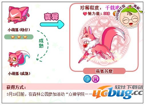 4399奥比岛萌狐苏摩怎么得?奥比岛萌狐苏摩在哪得?答:奥比岛萌狐苏摩3月19日前,在森林公园参加活动众神学院神技特训!获得!在一望无际的大洋上,有一个美丽神秘的奥比岛,岛上有瑰丽奇伟的自然风光,有繁华热闹的都市风景,有梦幻可爱的各式小屋,有趣味十足的比赛