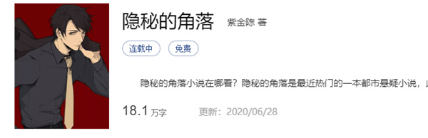最近可能很多人都知道了本年度的神剧《隐秘的角落》,该款作品凭借着出色的剧情和演员精湛的演技迅速俘虏了诸多玩家的心,也因此开始有很多人想要在网络上找到原著,进行免费试看,在这里小编我也为大家准备好了相应的内容,大家可以一起来看看哦。
