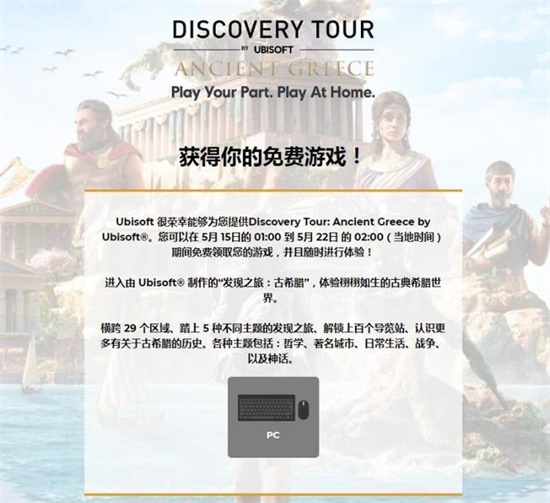 刺客信条系列大家玩了几个呢?今天制作刺客的官方育碧在Uplay上宣布了一个重大消息,自5月15日起《刺客信条:起源》、《刺客信条:奥德赛》“探索之旅”模式可以免费领取的活动,刺客信条系列是一场精彩的旅游模式器,玩久了会觉得无趣,而育碧也正是意识到这点,才加入了探索之旅模式,该模式有什么不同呢?具体的免费领取时间是什么时候呢?想了解的朋友跟随小编往
