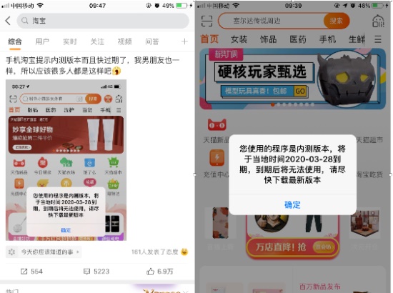 这里是斜杠下载站为您提供的资讯,小编作为一名淘友,三天不逛淘宝感觉很难受呀,今天登上淘宝,诶,居然跳出一个弹窗,显示内测版本即将到期,吓得我赶紧去看看别人是不是有这种情况,原来大家都一样,各位淘宝的小脑袋是不是和小编一样充满很多小问号,那么淘宝内测版本即将到期弹窗解决方法是什么呢,快来跟小编看看吧。
