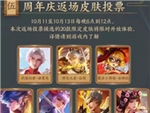 王者荣耀返场皮肤在哪里投票?王者荣耀这个月底就要四周年了,每年周年活动王者荣耀都会开启返场皮肤的活动,将限定的皮肤再拿出来返场,今年也不例外。目前王者荣耀返场皮肤已经可以投票了,但是还有不少小伙伴不知道在哪里投票,于是今天小编带来了王者荣耀