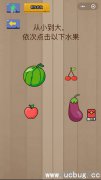 在微信脑力大乱斗第17关中,要求我们给我水果们进行排序,所以这里小编带来了 微信脑力大乱斗第17关攻略 ,一起来看看吧! 第17关 这一关的题目是:从小到大,依次点击以下水果 答案:请看清题目,是给 水果排序 ,所以不点茄子。因此顺序为: 樱桃苹果西瓜