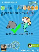 史上最囧挑战第六季第13关怎么过?下面就分享史上最囧挑战第六季第13关攻略给大家,希望这篇攻略对小伙伴们有所帮助。 史上最囧挑战第六季第13关攻略: 100斤的石头和100斤的女人哪个重? 直接点击题目上的女人,女人是会虚报的~