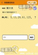 烧脑最囧挑战第31关怎么过?下面就分享烧脑最囧挑战第31关攻略给大家,希望这篇攻略对小伙伴们有所帮助。 烧脑最囧挑战第31关攻略: 第六个数字是多少? 第六个数是:253