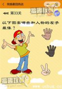 烧脑最囧挑战第33关怎么过?下面就分享烧脑最囧挑战第33关攻略给大家,希望这篇攻略对小伙伴们有所帮助。 烧脑最囧挑战第33关攻略: 以下图案哪些和人物的左手最像? 当然是自己的左手啊~(直接点击左手)