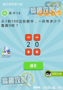 最无敌烧破大脑第16关怎么过?下面就分享最无敌烧破大脑第16关攻略给大家,希望这篇攻略对小伙伴们有所帮助。 最无敌烧破大脑第16关攻略: 从1到100这些数中,一共有多少个整数9呢? 答案是20!