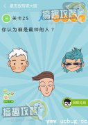 最无敌烧破大脑第25关怎么过?下面就分享最无敌烧破大脑第25关攻略给大家,希望这篇攻略对小伙伴们有所帮助。 最无敌烧破大脑第25关攻略: 你认为谁是最帅的人? 点击题目上的你即可~