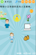 微信最无敌烧破大脑第10关是帮助小王快速的走向人生巅峰。难度比较简单,那么微信最无敌烧破大脑第10关怎么过呢?下面斜杠小编将给大家带微信最无敌烧破大脑第10关答案。 第10关 答案:把灯泡的光环移到男人的头上即可。 以上便是斜杠小编为大家带来的微信最