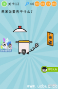微信最无敌烧破大脑第12关是煮米饭要先干什么?难度比较简单,那么微信最无敌烧破大脑第12关怎么过呢?下面斜杠小编将给大家带微信最无敌烧破大脑第12关答案。 第12关 答案:把题目中的米拖到电饭锅中。 以上便是斜杠小编为大家带来的微信最无敌烧破大脑第12