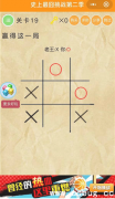 《史上最囧挑战》第二季第19关攻略赢得这一局。井字棋游戏,按照正常规则怎么都过不了关的,下面斜杠小编将给大家带来史上最囧挑战第二季第19关攻略。 第19关 题目:赢得这一局。 斜杠小编解答:同时点两下(在中间的两个空位上)就赢了。(一口气下两个子)。果