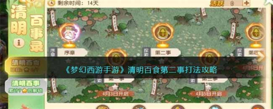 梦幻西游手游清明百食第二事怎么过?梦幻西游手游是一款非常有意思的经典回合制玩法的MMORPG类手机游戏,游戏内有着非常丰富的玩法内容等地玩家们前往探索。游戏中有着非常多的活动玩法内容等待玩家们前往参与。
