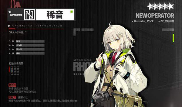 明日方舟中至今也登场了许多不同的干员,而最近也上线了一位新的五星干员稀音,而她可以在活动中就能获取了,那么肯定还有不少玩家不知道稀音是一位怎么样的干员,而本次就带来这位新干员稀音的相关介绍了,感兴趣的玩家一起来看看吧。